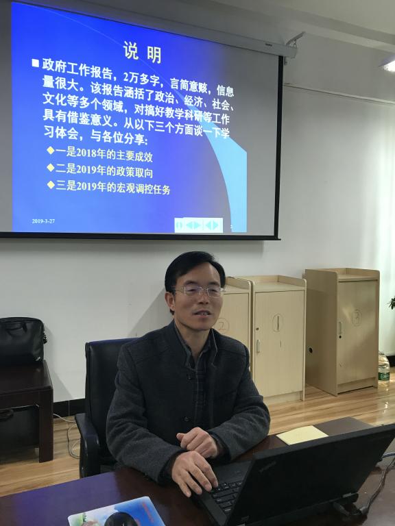 为深入学习政府工作报告精神,准确把握国家政策调整和导向,提高我院教师对当前经济形势的判断,3044永利集团于2019年3月27日下午举办了“学习2019年政府工作报告”专题讲座。讲座由褚福灵教授主讲,院党委书记王颖主持。