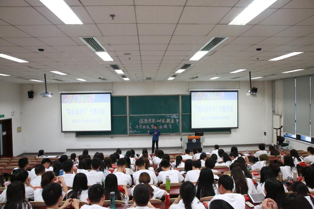 生开学典礼后,院长李晓林教授为新入学的研究生们进行了一场别开生面的“院长谈治学”专题讲座,介绍了专业知识、并分享了做学问的经验。李晓林教授用自己的亲身经历告诫同学们要注重“知识和学科的责任、对民族、社会和公众的责任、立志于学”,明确“学习与成长”、“道路、科学方法与创造”、“师从与择友”等的关系;充分认识“在充满不确定性的经济社会发展中发挥保险、精算、社会保障体系的重要作用”,妥善处理好“知识背景与研究方向、渊博深邃与研究专注、学习与科研、热诚与持久、创造与接受、大原则与小点滴、批判性思维与谦和为人”等的关系,在不断的实践、创造、奉献中获得成长。李晓林教授告诫学生要注重人才成长系统的构建和研究方法的传承与创新,尤其是要掌握风险管理与保险保障学科相关的研究方法,用东方智慧和中国经验去研究现实问题;告诫学生要对接国家重大发展战略和新文科建设,创新发展新型风险观,深刻认识社会要素结构优化与风险演化规律,研究变风险为生机的路径与条件,以实现重大的现实价值、时代价值和做出深远的历史贡献。