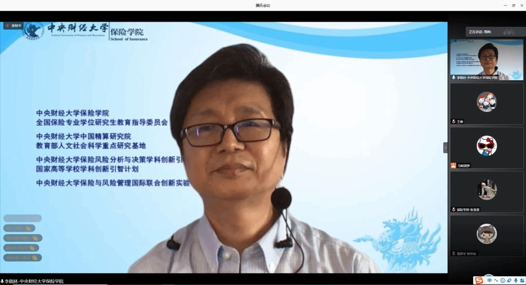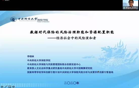最后,院长李晓林教授做了题为《数据时代保险的风险治理职能和资源配置职能——经济社会中的风险演和者》的学术报告,从五个方面对保险前沿研究进行了深入浅出的阐释:一是风险结构、风险观与风险治理;二是数据时代的高维并行世界;三是保险的风险治理和资源配置职能;四是推进保险的数据化和数据保险工程;五是风险教育决定经济社会的未来。高屋建瓴的报告开拓了同学们的思路,让同学们从不同的角度对保险有了更深入的了解,对时代挑战、青年责任与担当有了更加深刻的感悟。
