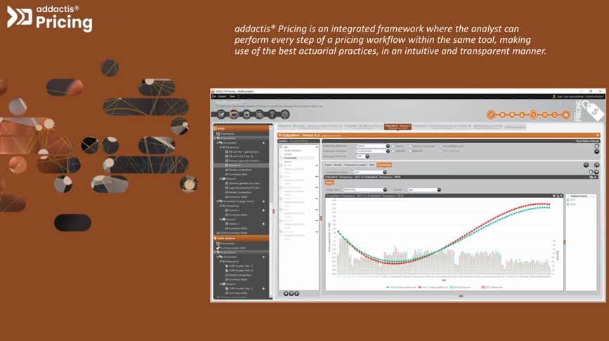课后,同学们运用Addactis软件进行了建模练习,并进行估算健康险产品下一年保费的精算定价实践竞赛。竞赛采取自由组队的形式,由组长负责软件操作以及构建模型,组员们共同讨论建模假设与细节,集思广益逐步优化定价模型。在实际操作软件的过程中,通过可视化,统计验证等工具改善模型结果。同时,也将模型分析结果与实际情况进行比较,以此验证模型的合理性以及适用性。