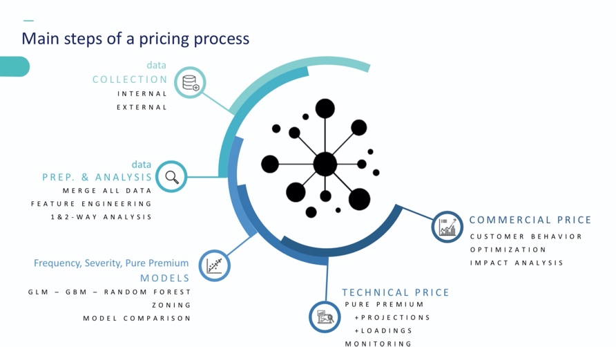 姚佶博士首先运用了打分数的概念将复杂抽象的数学模型转化为具体的例子,介绍了非寿险定价原理、聚类分析和广义线性模型理论,接着他梳理了非寿险定价的主要流程,包括数据收集、分析、建模、定价和报告,为同学们之后的模型建立打下了良好的基础。