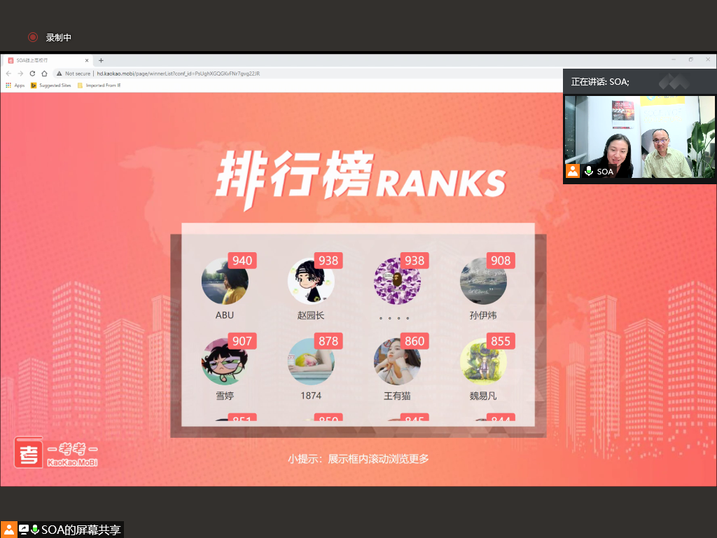 答题活动最终排行榜(“ABU”即为2020精算研王明红同学)