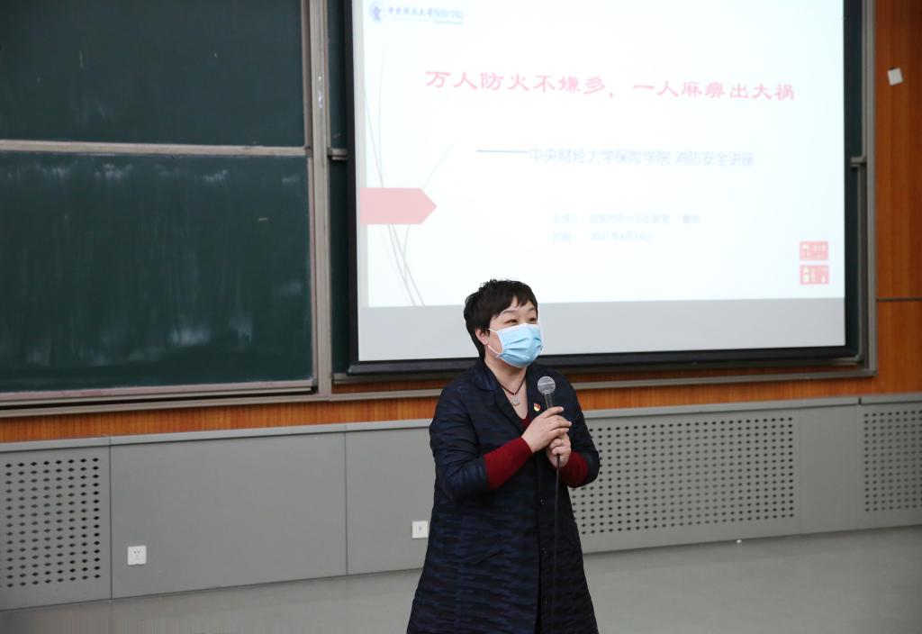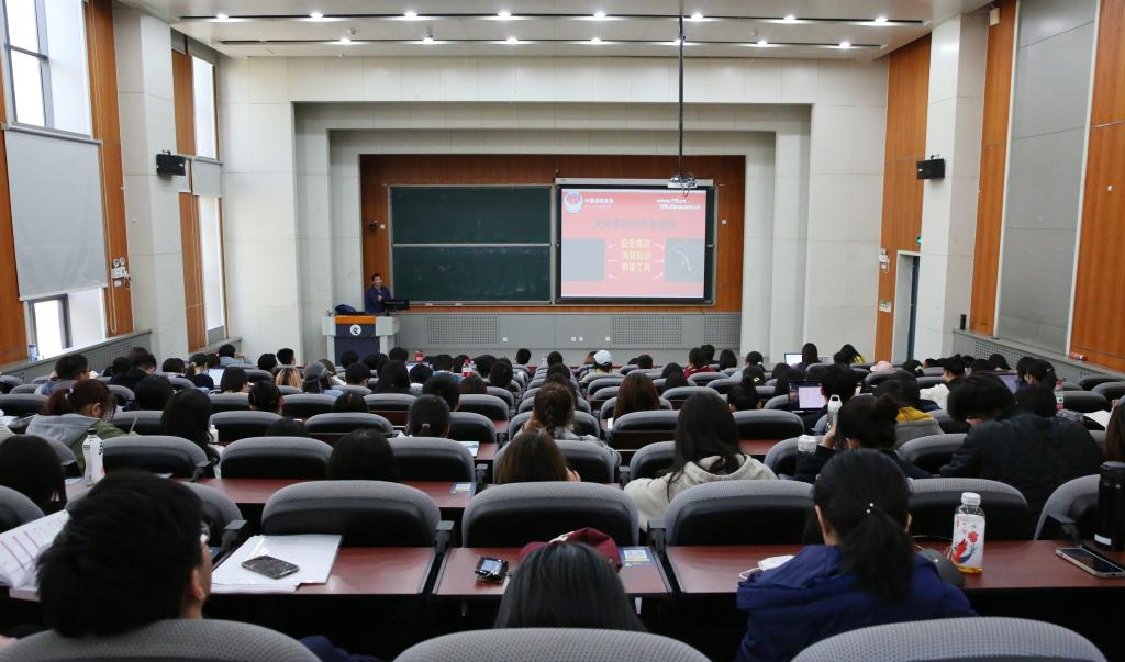 北京市防火中心教官董刚老师为师生讲授了题为“万人防火不嫌多,一人麻痹出大祸”的消防安全知识讲座。董刚老师从某香水灌装车间错误的灭火方式造成严重火灾的案例出发,引入了消防安全知识的讲解。针对在宿舍居住的学生们,董刚老师强调了宿舍吸烟、乱接插线板、人走不断电、手机长时间充电爆炸等火灾隐患,并通过真实事件进一步阐述宿舍内不安全行为带来的危害,在座师生进一步认识到日常消防安全的重要性。