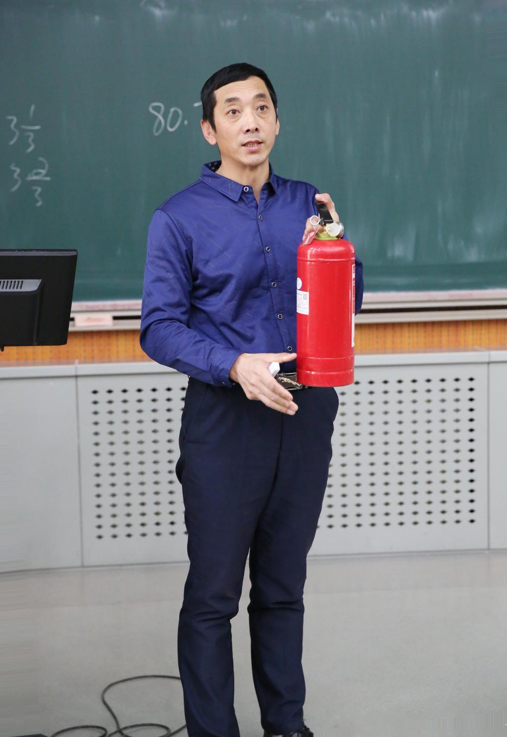 董刚老师向师生们展示了近几年发生的火灾事故案例,并向同学们普及了消防器具使用方法和逃生知识。董刚老师强调,师生需要具备“四个能力”:检查消除火灾隐患的能力、组织扑救初起火灾的能力、组织人员疏散逃生的能力、消防宣传教育培训的能力,而具备这些能力就需要掌握相关的消防安全知识,在日常生活中改正不良习惯、防患于未“燃”。