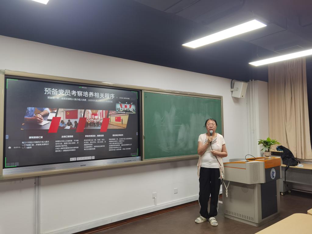 专题党课第一节由包英娟老师主讲。包英娟老师首先就“什么是中国共产党党员”与同学们进行了探讨与讲解,让学员们重新审视自己的入党动机,更加深刻地认识到党员的责任和使命。接着,包老师仔细地讲解了入党流程以及需要用到的材料,为学员进一步明确了入党流程。