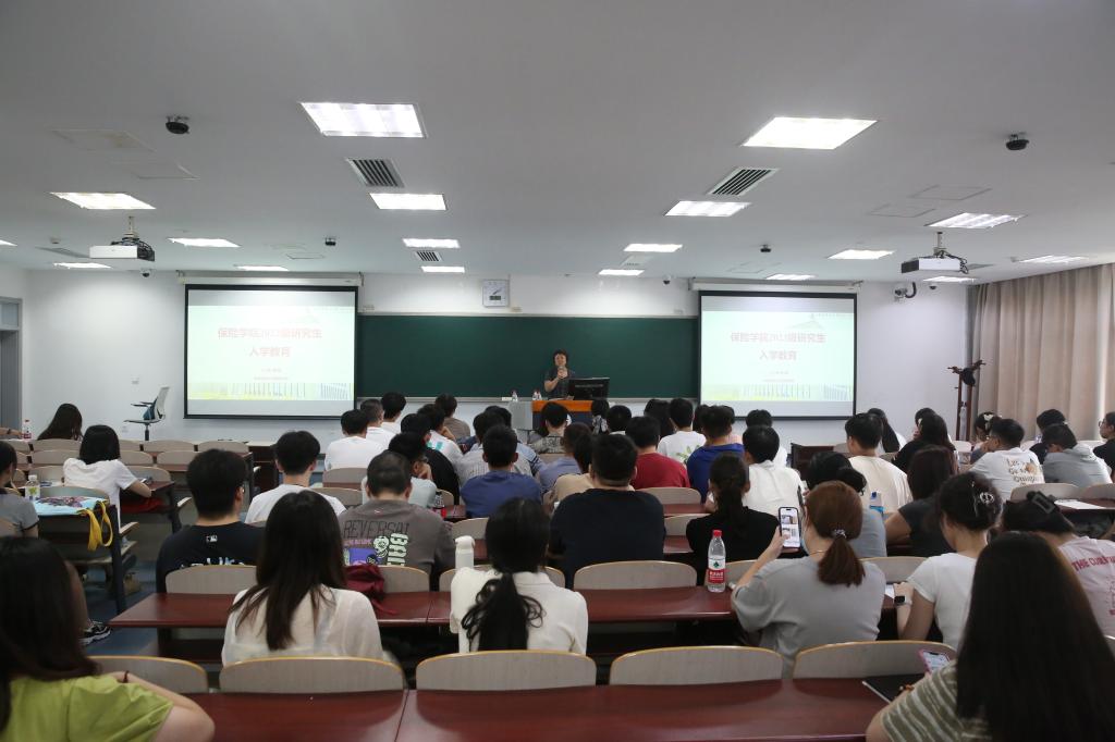 研究生入学教育于9月8日在西区主教302教室召开。会上,副院长郑苏晋代表学院对2023级研究生的到来表示了热烈的欢迎,简要介绍了学院发展和专业等内容。研究生工作办公室主任、博士研究生辅导员马安静就选课事宜、学籍管理、教学管理及论文管理等方面分别进行了详细介绍。党务秘书周葳老师介绍了新生党组织转接及入党流程、新建党支部及后续培养工作、发展党员流程以及党员教育管理等内容。硕士研究生辅导员王维老师带领新生们学习研究生手册,从培养方案、规章制度、日常管理及学术道德与规范等方面出发,介绍了学院的研究生培养体系。