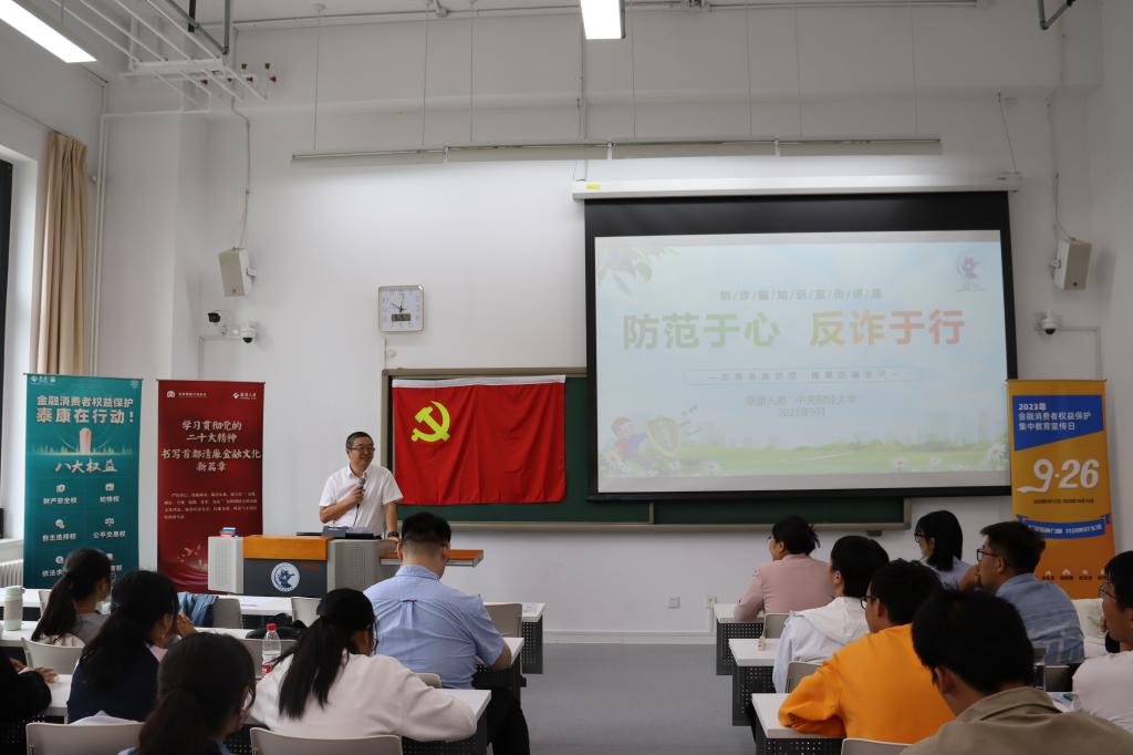 为开展金融知识普及、金融风险提示和反诈宣传,切实提升大学生的金融素养,有效增强新生的风险防范意识,9月26日,学生处学生就业指导中心、保卫处、3044永利集团、泰康人寿北京分公司共同举办了金融消费者权益保护暨反诈宣传讲座。泰康人寿总公司马东伟在开场致辞中指出,9月26日是金融消费者权益保护集中教育宣传日,学习如何辨别身边的金融诈骗,并帮助身边亲友规避诈骗陷阱,是同学们的责任与义务。