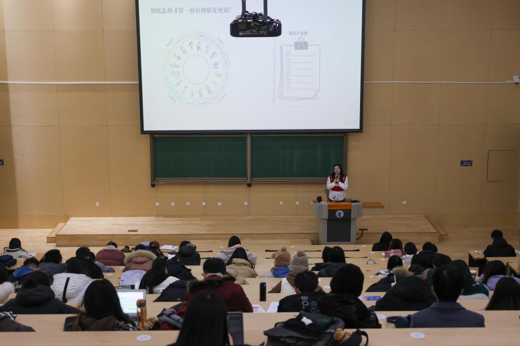 一开场,张笑慈老师向同学们抛出了一个问题:怎样才算合理的职业规划?张老师强调了发展主线的重要性,并分享了我校优秀毕业生的职业规划案例。