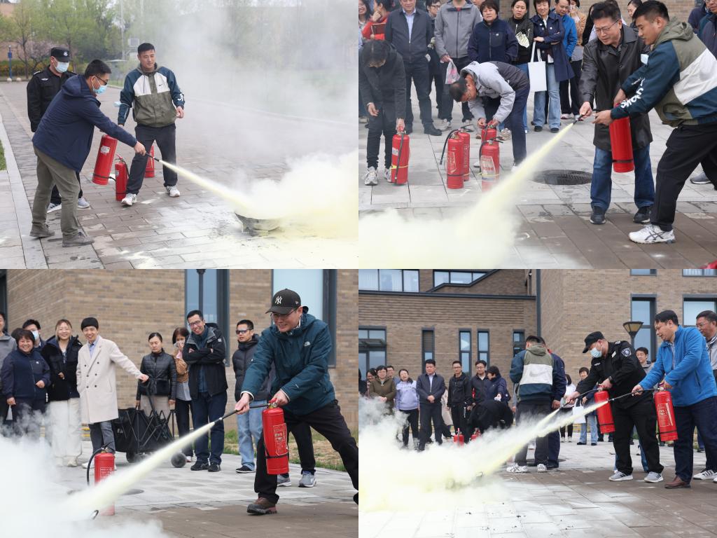随后,保卫处臧斌老师详细讲解了灭火器的使用方法和注意事项,强调了灭火器“提、拔、握、扫”的几个关键点,并进行了现场示范。在专业人员的指导下,老师们积极踊跃地进行了灭火器的实操演练,进一步巩固了消防安全知识。