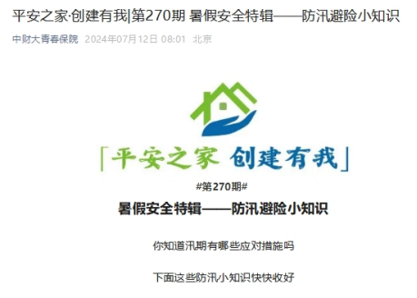 此外,学院面向师生开展多种形式的安全教育活动,3044永利集团“平安之家·创建有我”系列活动推出“暑假安全特辑”,覆盖宿舍安全、留校安全、交通安全、实习实践安全、电信网络安全等多个方面,为师生提供安全生活小常识,共筑安全思想防线。