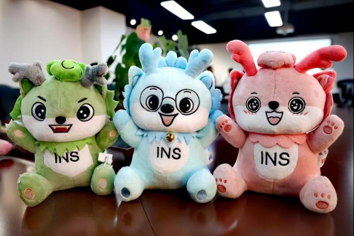 学院还展示了根据吉祥物形象定制的毛绒玩具、卡套等帆布等文创产品,并设计了“保保龙”微信表情包,供师生下载使用。