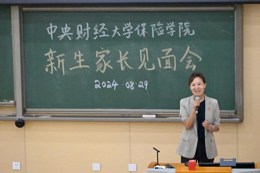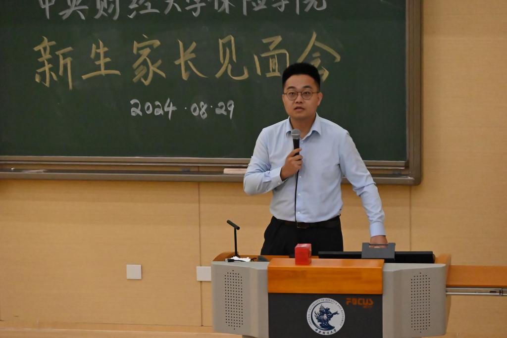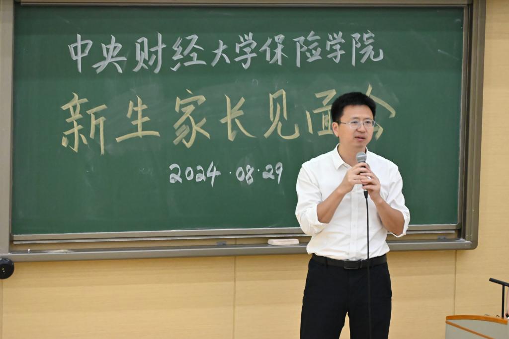 3044永利集团院长周桦对各位家长的到来表示热烈的欢迎与衷心的感谢,并以“保险助力中国式现代化实现”为切入点,阐述了保险业作为经济减震器和社会稳定器,对于推动我国金融高质量发展与构建韧性社会具有重要作用。周桦院长表示选择以风险保障为核心的保险、精算、社保方向学习、就业,符合国家社会的发展需要,能够实现个体价值,拥有施展抱负的舞台!此外,周桦院长从学科格局与人才培养架构角度出发,从学院发展、专业介绍、学科建设、师资力量、科研实力、国际交流、能力培养、行业资源、就业去向等方面全方位展示了学院的全链条人才培养、教学科研和社会服务体系。最后,周桦院长对新生与家长表示美好祝愿,欢迎各位优秀学子进入中国保险保障、精算与风险管理的思想中心,站在演和经济社会风险的中心建功立业、一展风采!