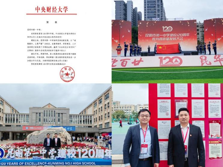 会前,我校向昆明市第一中学发去贺信。建校以来,昆明市第一中学始终坚持创新发展,以“诚敬勤朴,公勇严毅”为校训,在教育教学、师资建设、人才培养等方面取得了丰硕的成果,赢得了社会的充分肯定和广泛赞誉!据统计,近五年来,昆明市第一中学已向我校输送20余名优质生源,期待今后有更多昆明一中学子圆梦中财大!