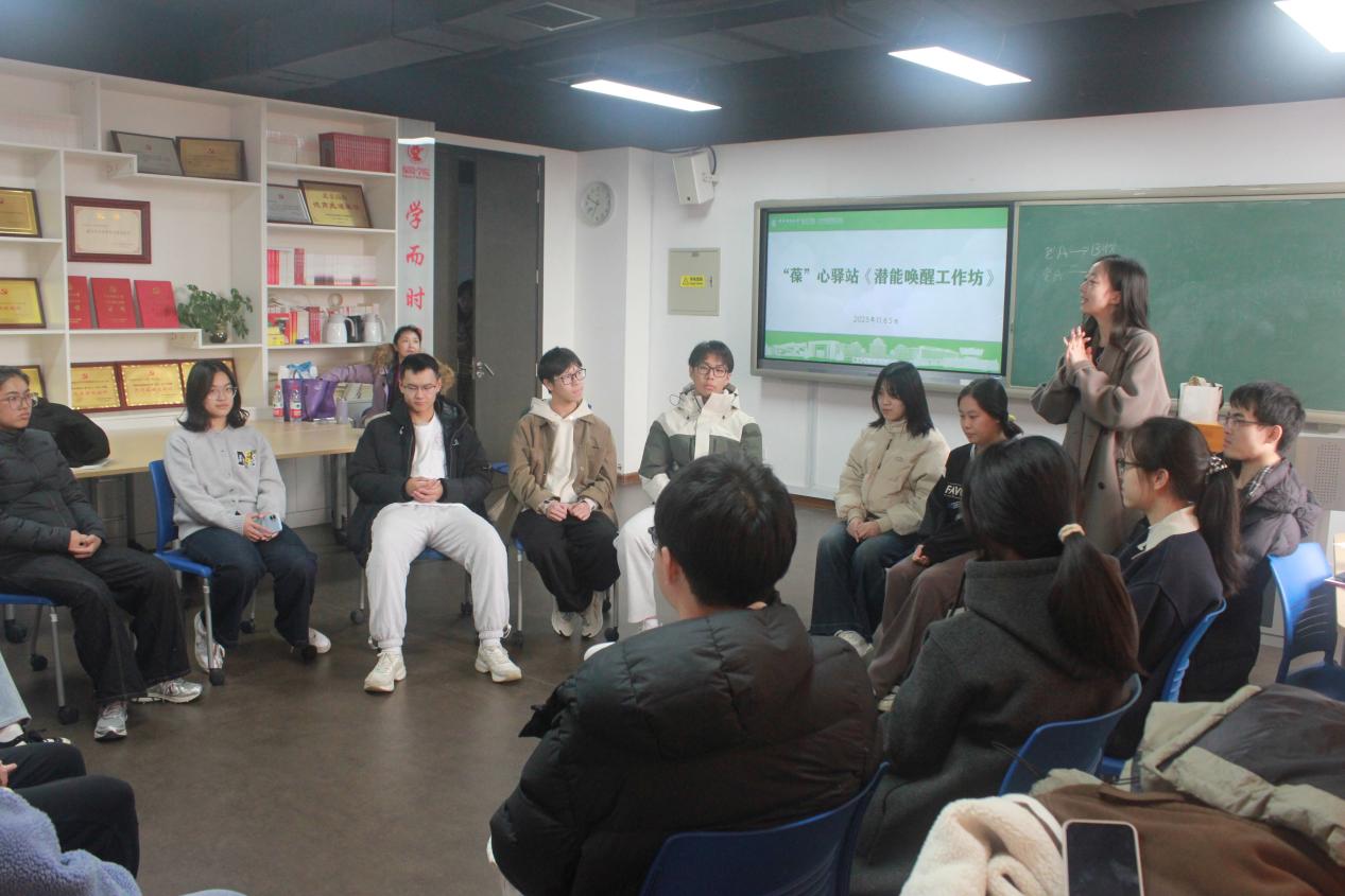 揭牌仪式结束后,秦旭妍老师带领师生在209工作室,开展《潜能唤醒工作坊》团体辅导活动。通过互动游戏、分享交流等轻松形式,师生在参与中探索自我、凝聚力量,标志着“葆”心驿站正式投入运营。