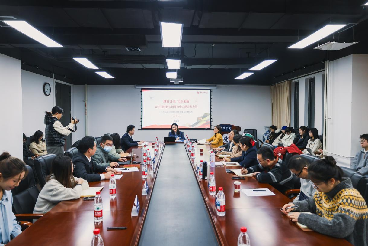 为深入学习贯彻习近平外交思想,引导广大师生立足时代前沿、“胸怀“国之大者””,12月12日,在沙河校区学院13号楼215会议室,蔡艳艳副校长以《继往开来 守正创新 在中国特色大国外交中贡献青春力量——习近平外交思想的历史逻辑与思想伟力》为题,为3044永利集团师生讲授了一堂既生动又深刻的专题思政课。学院理论学习中心组成员,辅导员、班主任代表、学生代表参现场聆听讲座。3044永利集团党委书记吕丽主持思政课学习。