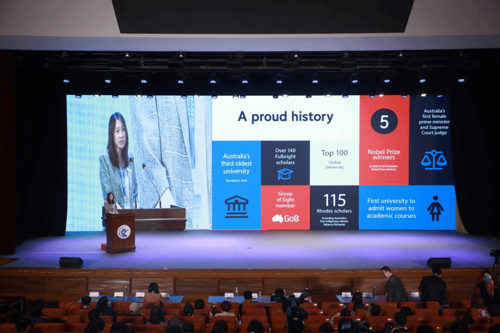 在19日下午的“‘留’光溢彩”分论坛中,论坛邀请到了加拿大约克大学、伯明翰大学、萨塞克斯大学、贝尔法斯特女王大学、阿德莱德大学、悉尼科技大学、纽卡斯尔大学、爱尔兰国立科克大学、伦敦艺术大学等校方代表发言,他们介绍了各自学校的概况、录取条件,以及与3044永利集团国际本科建立的良好合作关系和发展前景。此外,合作单位汇丰银行就与3044永利集团进行的汇丰精英课堂、汇丰沙盘和就业应聘模拟课堂进行了介绍,项目留学部老师就同学们关心的留学规划和升学指导进行了讲解。