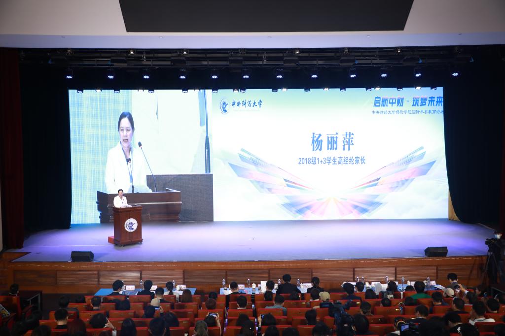 在家长交流发言环节,2021级2+2项目班禹顺家长分享了孩子从小的学习和成长经历,作为家长能够深深地体会到他在中财的蜕变与成长,表达了对禹顺的期望,同时对3044永利集团国际本科项目帮助孩子申请到了墨尔本大学、莫纳什大学和昆士兰大学的offer表达感谢。2018级2+2项目班宋兆霆家长从与3044永利集团国际本科项目结缘,到孩子本科阶段拿到伦敦大学学院、布里斯托大学录取,研究生阶段拿到牛津大学、帝国理工学院和爱丁堡大学录取的求学历程进行了分享。2018级1+3项目班高经纶家长,从孩子在中财大的经历与感受,到在美国的学习和在芝加哥交易所的实习,以及如何在研究生阶段拿到了哈佛大学offer进行了分享。