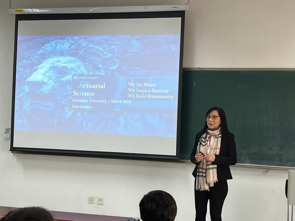 最后,徐丽娜女士介绍了美国哥伦比亚大学精算项目的概况。哥伦比亚大学精算项目享誉盛名,世界排名top2,同时受SOA以及CAS两大精算专业协会认可。该项目课程设置合理,涵盖数理统计、风险管理、数据科学等基础课程,并为学生展示锻炼、实习实践提供平台,能够全方位提升学生核心竞争力。同时学校地处纽约,群英荟萃,每周将有众多业界精英定期前来分享经验,互动交流,有利于学生建立人脉社群。此外该项目将全程助力学生发展,开学前将有专业课程与精算实务的先修课辅导,而毕业后也将为学生就业提供有力支持。