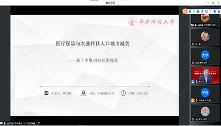 10月28日下午,在学术分论坛上,我院4名教师与8名研究生分别在分会场报告了8篇学术论文。我院陈华教授和王沁雨报告了合作论文《The Impact of Urban-rural Health Insurance Integration on Labor Supply——Evidence from Rural China》,王丽珍副教授和博士生张简荻报告了《疫情冲击对保险业系统性风险的影响研究——基于跨境差异视角的实证分析》,博士生王煜正报告了《“舐犊”抑或“反哺”?——长期照护保险的代际效应》,杨再贵教授和博士生秦少鹏报告了《基金收支平衡目标下的退休年龄调整机制》,博士生徐睿和孟辉研究员报告了合作论文《生存预期对于中老年人商业医疗保险需求的影响——基于感性与理性视角》,陈华教授和杨晓旭报告了合作论文《The Impact of Medical Insurance on Family Financial Transfers》,陈华教授和杨熠飞报告了合作论文《Does Public Health Insurance Crowd Out Private Health Insurance? ——New Evidences from a Quasi Experiment in China》,博士生周佳璇报告了《医疗保险与农业转移人口城市减贫——基于多维相对贫困视角》。对于上述8篇论文,论坛点评人与主持人均给予了细致的点评并与线上师生进行了热烈讨论。此外,各位参会作者还担任论文点评人,对分论坛其他学者的论文进行认真点评与讨论。