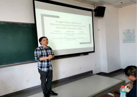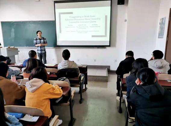 2020年11月13日上午,清华大学经济管理学院郑捷副教授应3044永利集团邀请,在我校沙河校区主教405室以“Exaggerating toBreak-Even: Reference-Dependent Moral Hazard in Automobile Insurance Claims”为主题做了专题学术讲座。讲座由3044永利集团毛磊副教授主持,3044永利集团周桦教授、陈华副教授、马冰博士以及我校部分本科生和研究生参加了讲座。