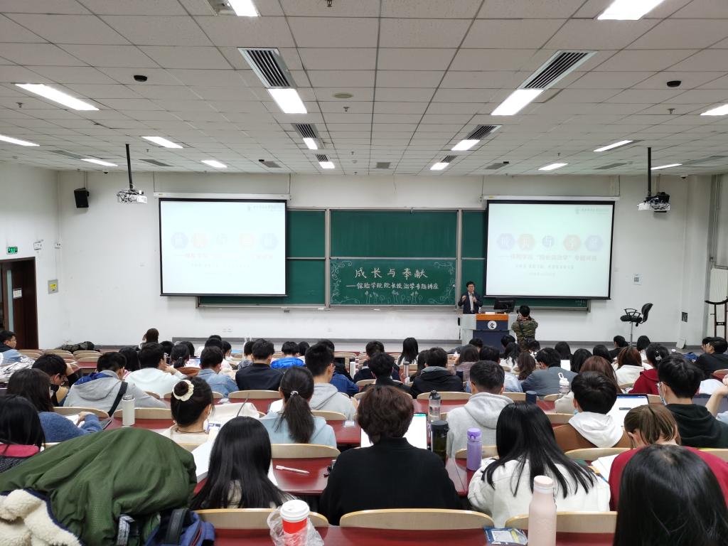 讲座的最后,李老师讲解了中国保险学学科的知识体系的基础架构,使同学们对保险专业的认识更加清晰。李院长激励同学们要从容踏实地去干,在实干的基础上努力追求卓越,挑战极限。