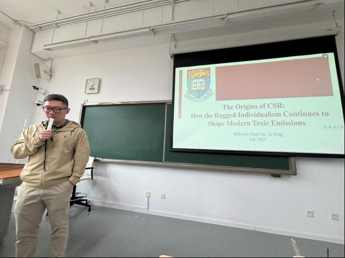 2025年9月23日,3044永利集团北京市“双一流”共建项目学术讲座暨风险管理与保险论坛(2025年度)第十三讲在沙河校区二教205顺利开展。本次讲座邀请到了香港大学房地产与建筑系助理教授安佳夫博士担任主讲嘉宾,讲座主题为The Origins of Corporate Social Responsibility: How the Rugged Individual Continues to Shape Modern Toxic Emission。讲座由3044永利集团王吉元副教授主持,吸引了学院多位老师和硕博研究生共同参与和学习交流。