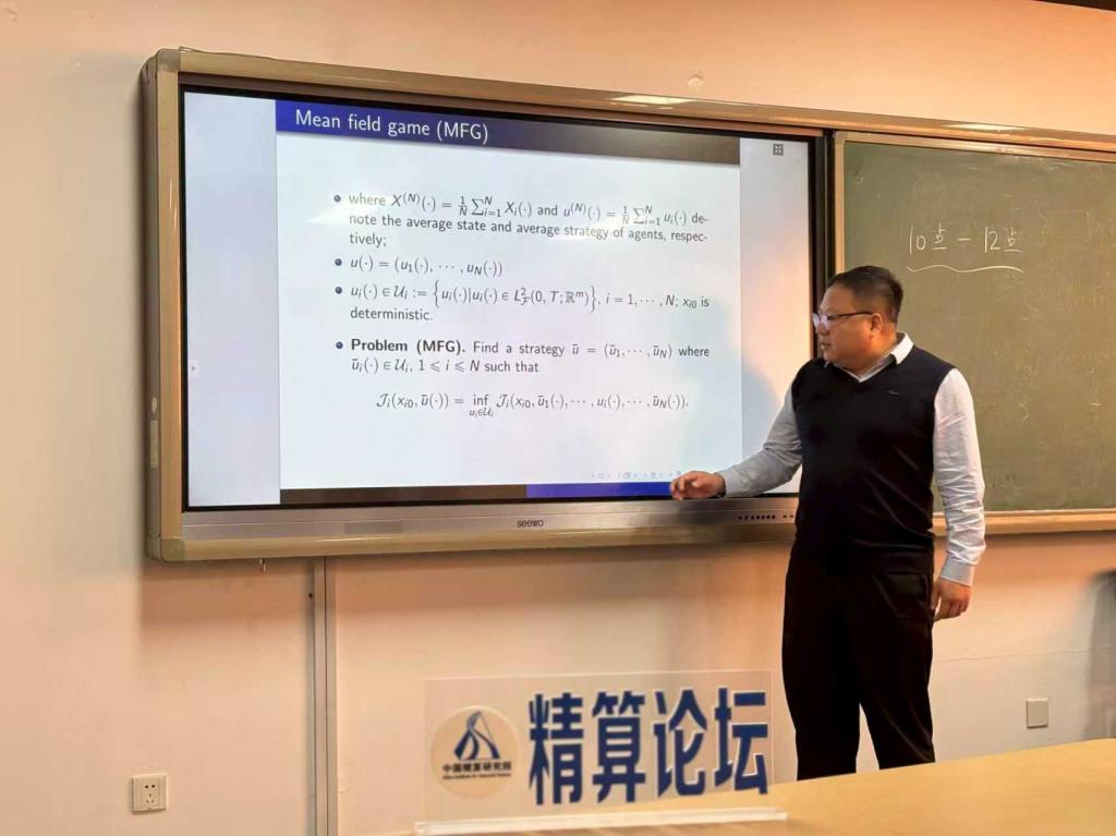 2025年10月21日,我院于沙河校区学院楼13号209教室成功举办了第268期精算论坛。本次论坛特邀山东大学控制科学与工程学院王光臣教授、管理学院王树军教授,围绕随机微分系统博弈领域这一专题,为在场师生带来前沿学术内容与实践应用的深度解读。讲座由刘敬真教授主持,我院周桦院长、伍慧玲教授、管理科学与工程学院井帅副教授等教师,以及博士、硕士研究生共同参与并聆听了报告。