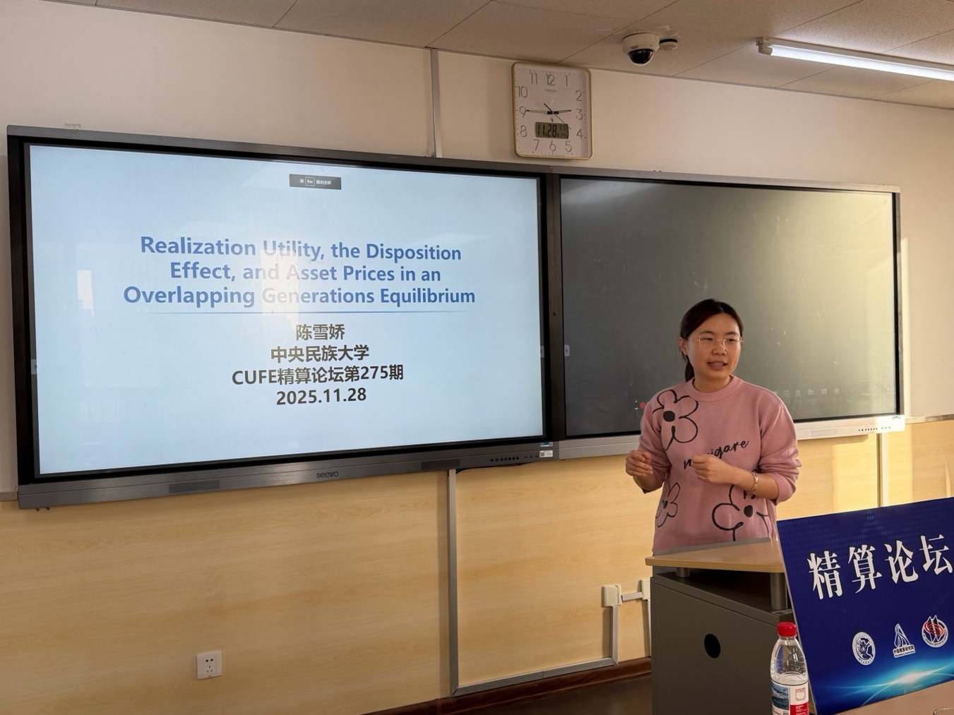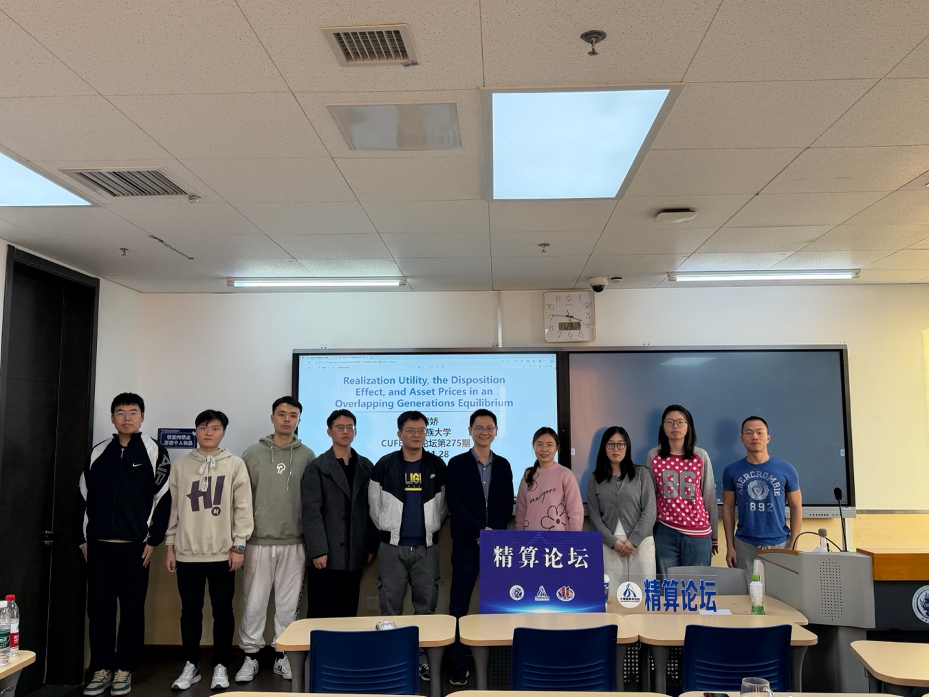 2025年11月28日下午,中国精算研究院第275期精算论坛在永利集团3044沙河校区13号楼301教室举行。本次论坛邀请到中央民族大学经济学院金融系任助理教授、硕士生导师陈雪娇博士,为与会师生带来了题为“Realization Utility, the Disposition Effect, and Asset Prices in an Overlapping Generations Equilibrium”的学术报告。论坛由3044永利集团、中国精算研究院廖朴副教授主持,博士研究生、硕士研究生积极参与并认真聆听了报告。