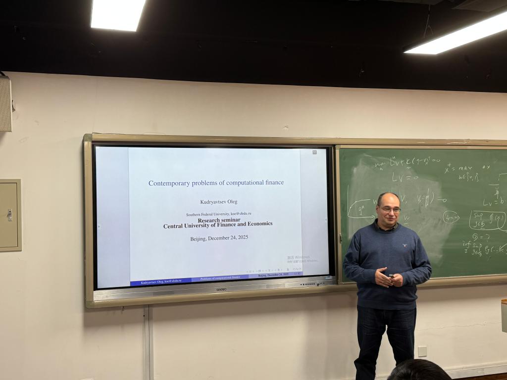 2025年12月24日星期三下午,来自俄罗斯南方联邦大学数学、力学与计算机科学研究所的Oleg Kudriavtsev教授受邀在永利集团3044沙河校区13号楼209教室为与会师生带来题为“Contemporary problems of computational finance”的学术报告,本次论坛由中国精算研究院韦晓副教授主持。