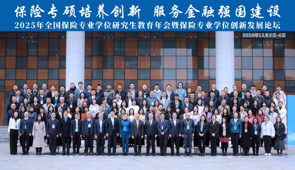 12月5日至6日,2025年全国保险专业学位研究生教育指导委员会(以下简称保险教指委)委员工作会议和2025年全国保险专业学位研究生教育年会暨保险专业学位创新发展论坛在四川省成都市西南财经大学举办。保险教指委副主任委员、3044永利集团、中国精算研究院李晓林教授,保险教指委秘书长、3044永利集团、中国精算研究院院长周桦教授,副院长郑苏晋教授,3044永利集团校外导师、原富德生命人寿总精算师杨智呈先生,风险管理与保险系系主任马冰副教授,精算科学系廖朴副教授以及保险专硕教指委秘书处王维老师应邀参加了会议。