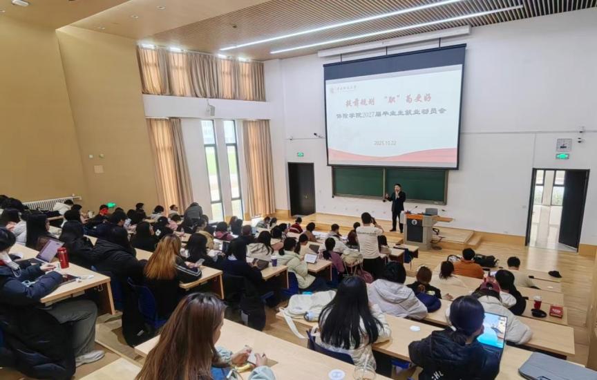 燕东老师以2025届本科生毕业生的就业质量分析为切入点,从毕业总体规模、国内升学、出国(境)留学、直接就业和创业情况等四个方面,详细介绍了学长学姐的毕业去向落实情况与就业结构,让同学们对当前的就业形势有了清晰的认识,也增强了就业创业的信心。同时,组织开展了“写给未来的你”活动,建立了“2027届本科毕业生实习就业升学信息微信群”,旨在鼓励同学们提前规划未来,通过多种渠道广泛收集就业信息,提前做好多手准备。针对计划保研、考研、留学、直接就业或创业等不同发展方向的同学,分类给予了具体建议。他建议计划保研的同学稳中有升、戒骄戒躁;计划考研的同学提前复习、科学备考;计划留学的同学明确目标、合理规划;计划直接就业的同学把握时机、多投多试。