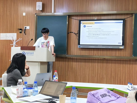丰远博在博士生论坛“人寿健康保险”分论坛上汇报了与导师周桦教授合作的研究《长期护理保险定价研究——基于集成学习方法与非齐次马氏链视角》。该研究针对中国老龄化加速下失能照护需求激增的痛点,融合了集成学习算法和非齐次马尔科夫链构建了一个精确的精算定价模型,预测了健康状态转移概率矩阵,并对集成学习算法进行可解释分析,突破了传统定价模型存在的局限。报告结束后,分会场与会专家点评人对报告的研究框架和研究方法给予评价和指导,并就算法和数据的选取与使用原因进行了深入讨论。