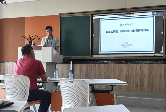 苏子桐在博士生论坛“养老金与社会保障”分论坛上汇报了与导师郑敏教授合作的研究《非正式护理、健康预防与长期护理政策》。该研究立足人口老龄化背景下长期护理需求激增的现实挑战,聚焦非正式护理、健康预防与政策设计的互动关系。论文构建了独生子女家庭议价模型,系统分析了家庭内部的决策逻辑:父母在年轻时通过储蓄、健康预防投资降低老年失能风险,失能后与子女通过家庭议价确定护理量与转移支付。研究发现,子女提供的非正式护理量由市场工资水平决定,二者呈反向变化关系;健康预防与储蓄存在动态关系——当健康状态消费边际效用低于失能状态时,二者呈替代关系,反之则呈互补关系。另外,健康预防能有效降低失能概率,缩减公共长期护理福利的最优规模,缓解政府财政压力。他建议确立“预防为先”战略,通过税收优惠、健康补贴激励个人健康投资;强化家庭照护支持;推动政策协同,如建立养老金与健康账户联动机制,最大化政策效能。