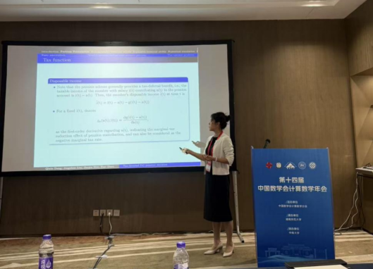 8月18日,刘敬真教授在计算金融分会场报告了论文“Optimal investment-consumption and tax-favored private DCpension decision”的最新研究进展。她表示,该研究聚焦于现行税收优惠条件下最优投资、消费和个人养老金购买问题的研究。研究的创新点在于,在个人养老金缴费决策中纳入税收激励因素以及与之相关的持续税收功能,同时引入了个人养老金的投资策略。论文运用鞅方法,针对特殊情况得出了半解析解法。然后,研究团队依据中国数据进行了一系列数值计算,分析不同参数以及一些重要因素对养老金和投资消费决策的影响,并对一些与私人养老金计划相关的经济现象进行了解释。刘敬真教授的报告引发了参会者的浓厚兴趣,大家就该研究展开了深入研讨,对论文的进一步完善提供了有价值的意见和建议。